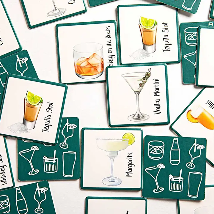 שלבו כיף ואסטרטגיה עם משחק קלפי הזיכרון של משקאות אלכוהוליים,
