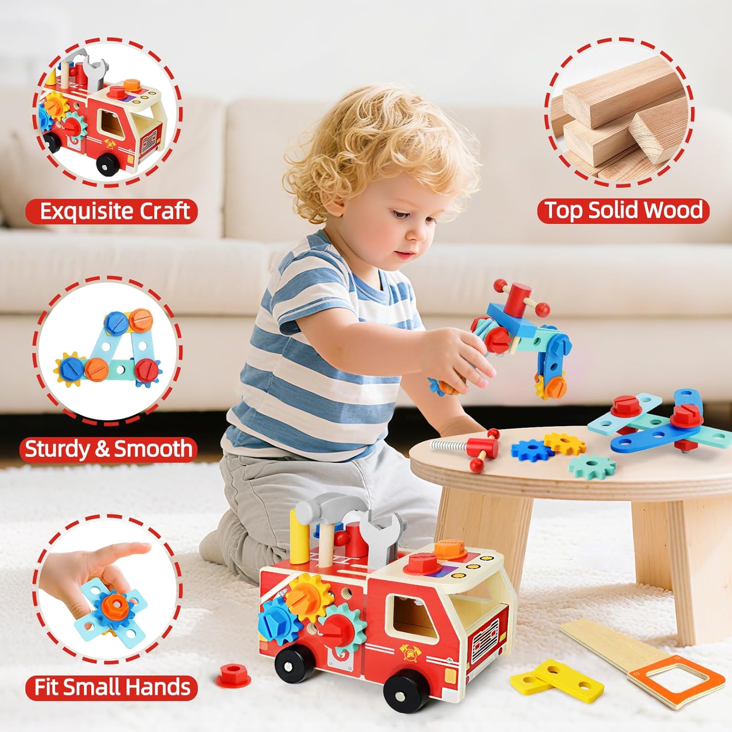 ערכות הכלים עשויות מעץ מלא באיכות גבוהה, עם קצוות מלוטשים למגע בטוח.