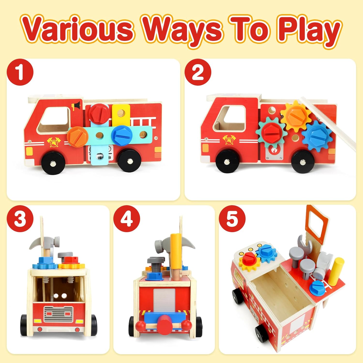 משאית האש יכולה לשמש כשולחן עבודה וקופסת אחסון.
