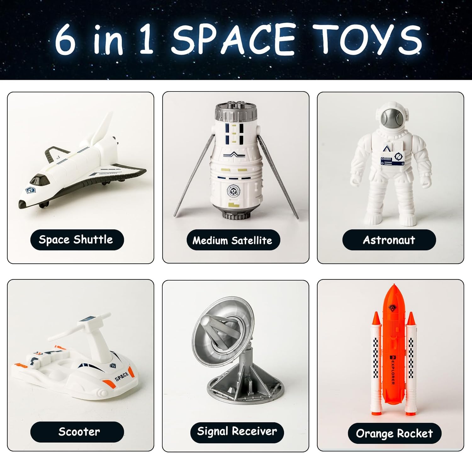 סט צעצועי טילים 6 ב-1 כולל מעבורת מציאותית, טיל כתום חזק,